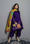 Purple Bandhej Cape Set