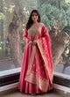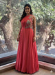 Pure silk organza intricate hand work sleeveless long flared gown with heavy work jacket.