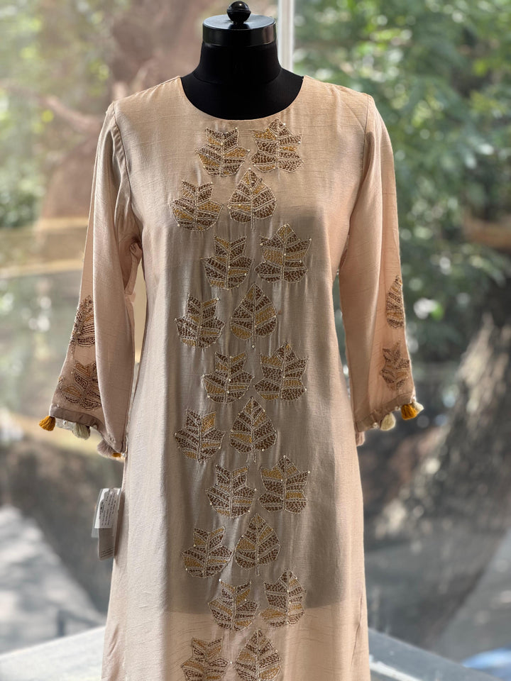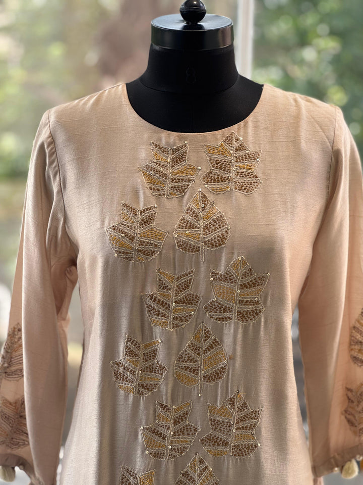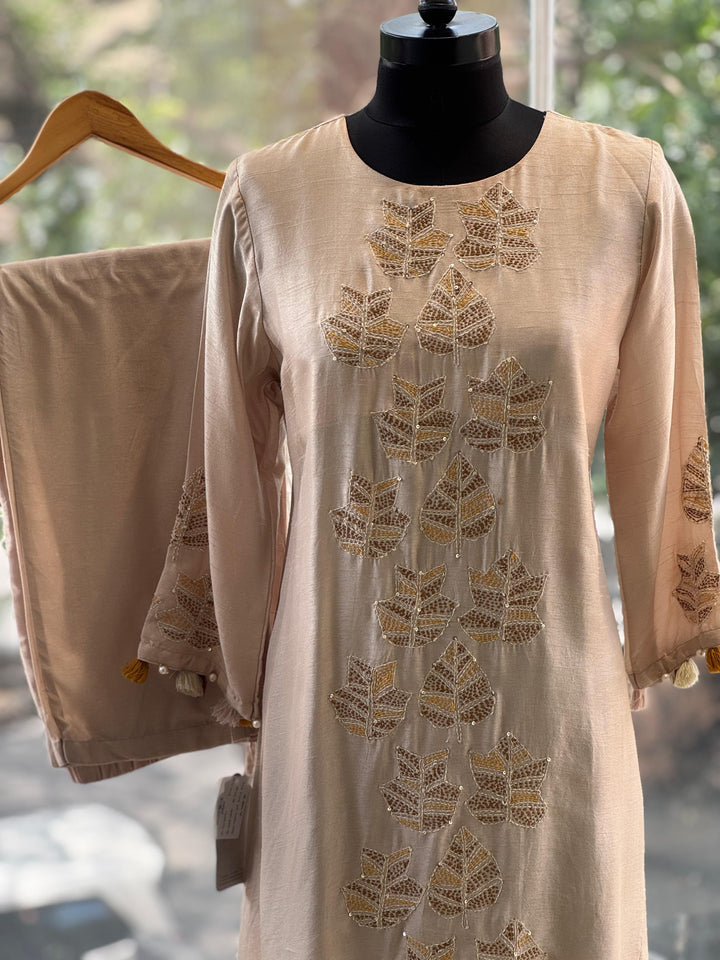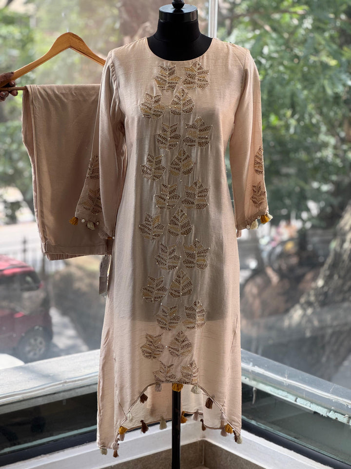 Pure silk hand weaving high low kurta with comfort fit pants.