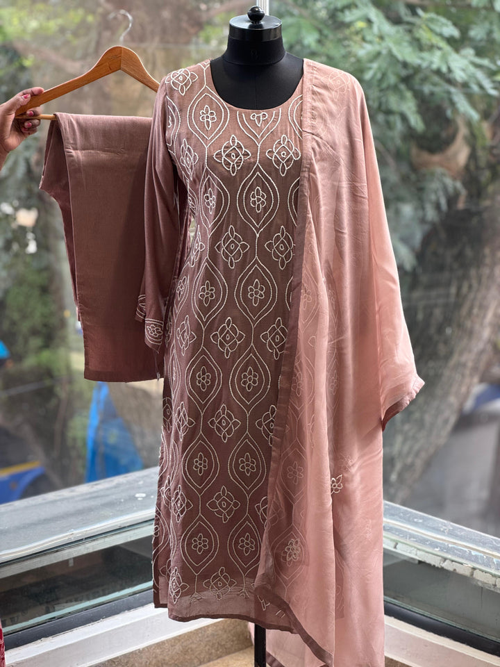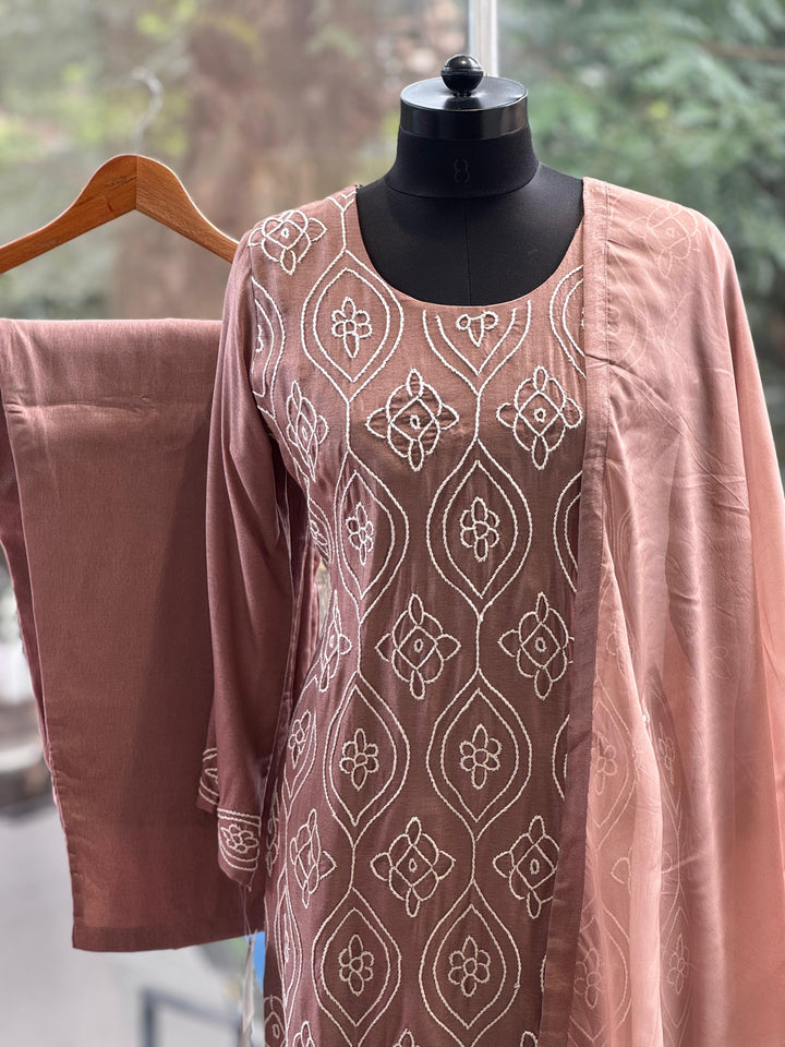 Pure silk pastel green straight cut jaal knot work kurta, comes with comfort fit pants and soft silk dupatta.