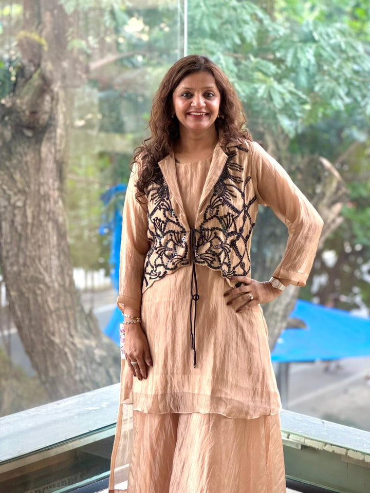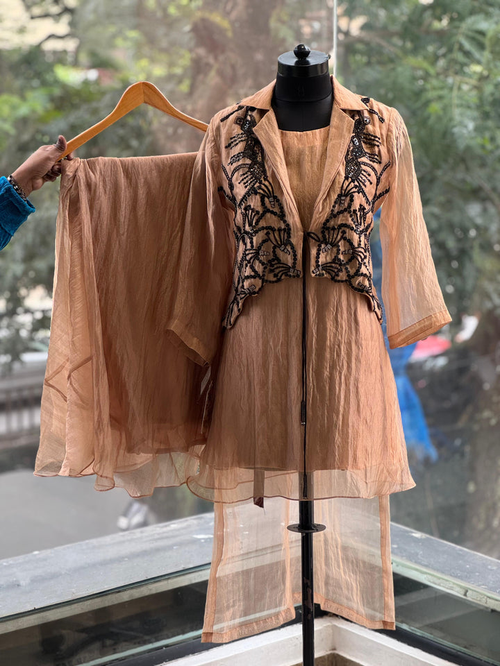 Brown Tissue Jacket Set