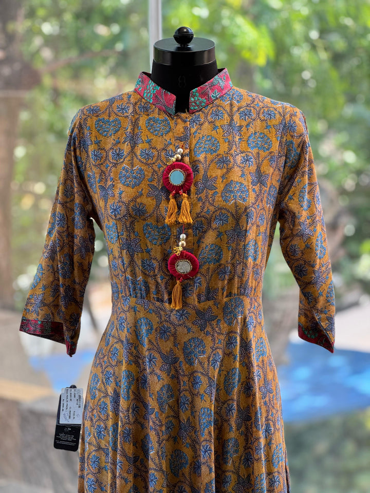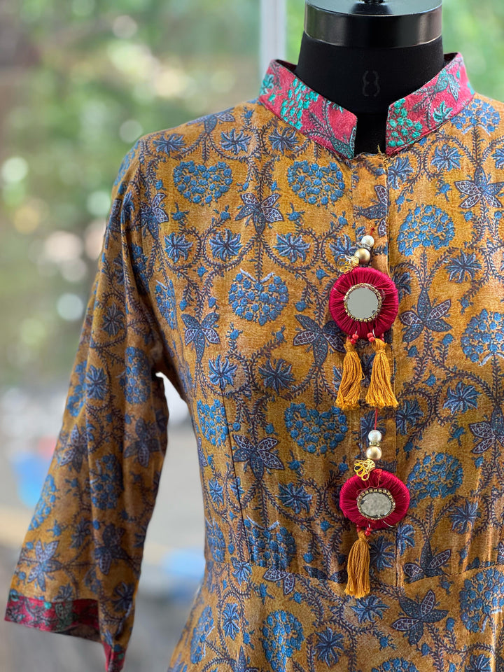 Soft cotton front mirror tassels long flared tunic.