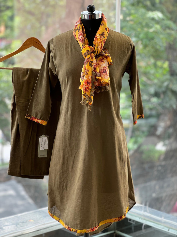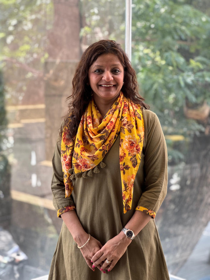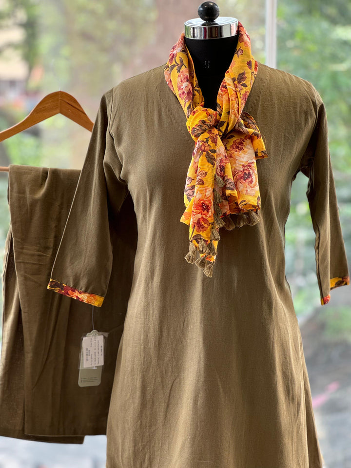 Pure linen co ord set with beautiful floral scarf.