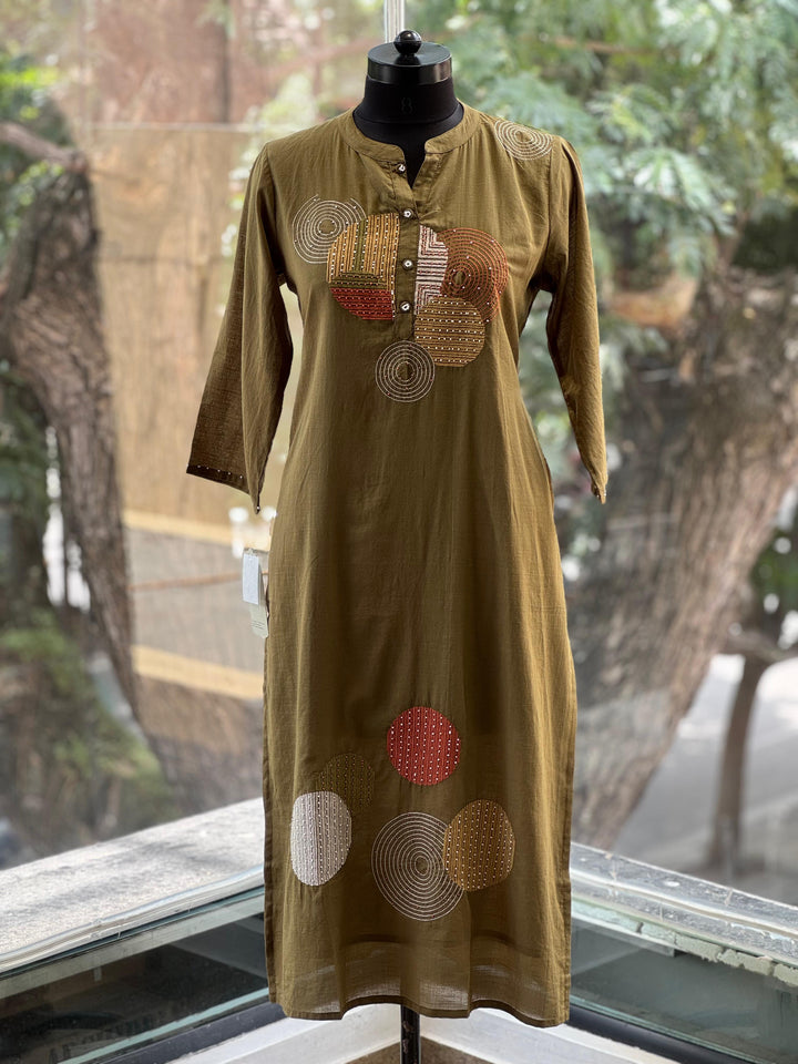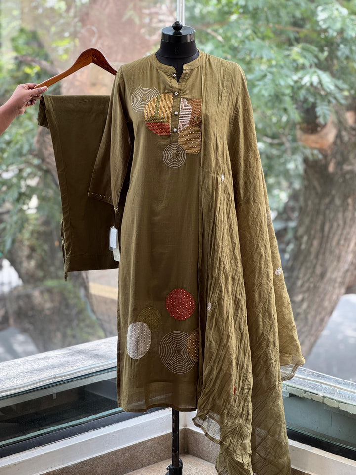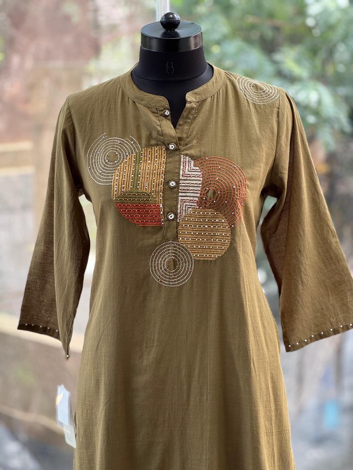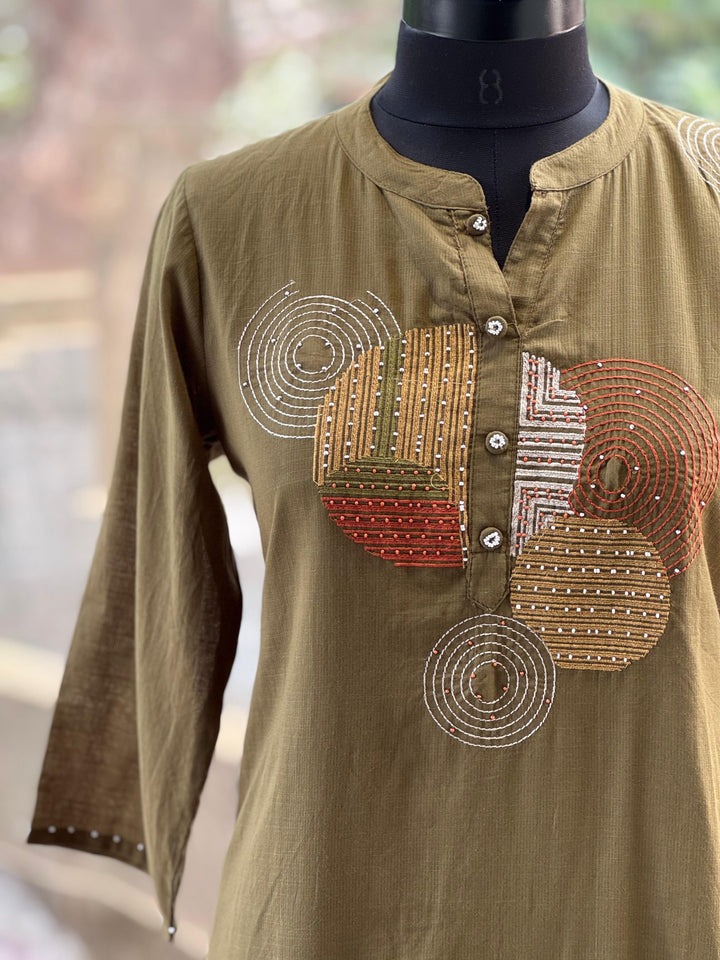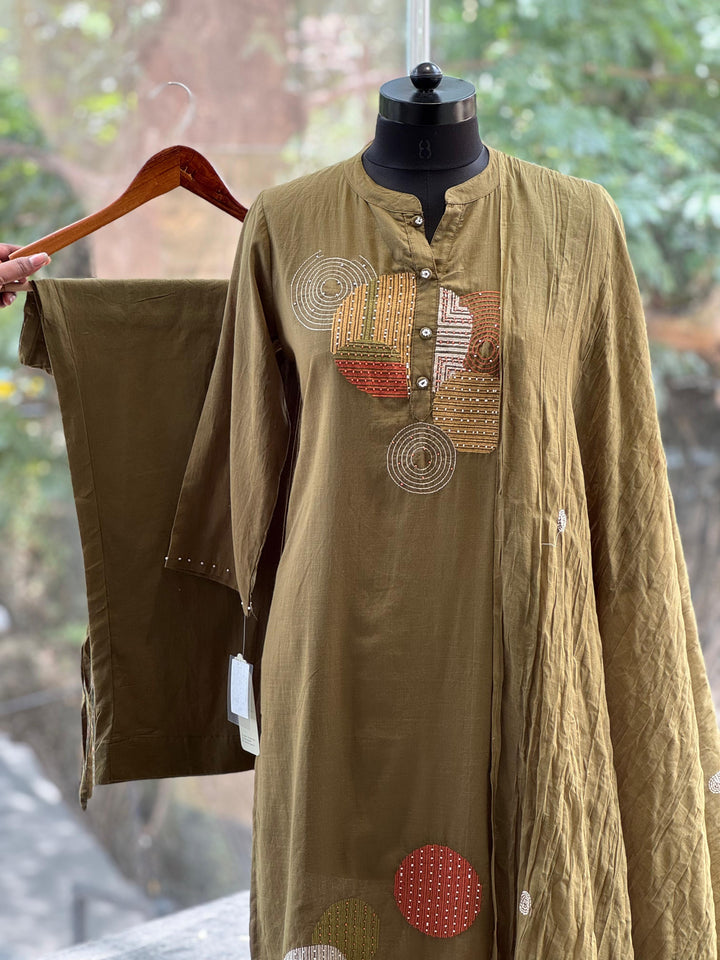 Pure cotton close collared neck and daman embroidered kurta with plain straight comfort fit pants and soft dupatta.