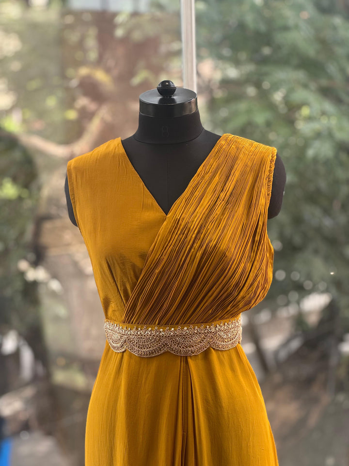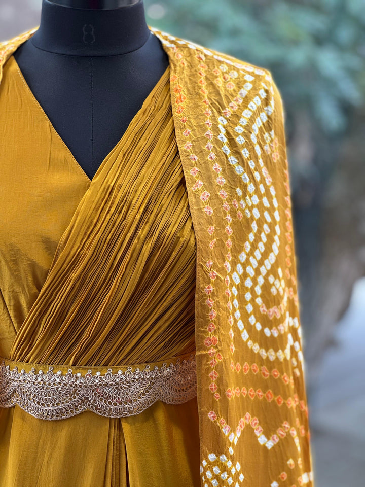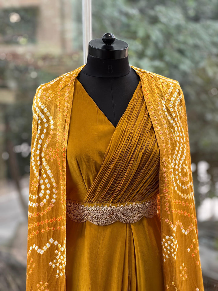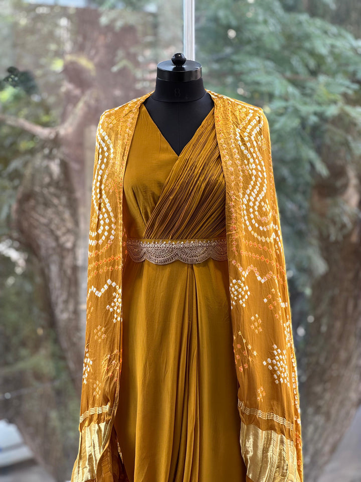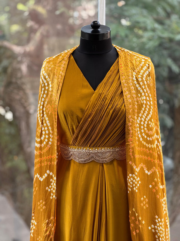 Mustard Bandhej Cape Set