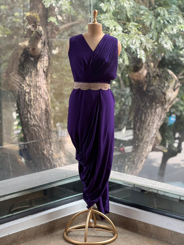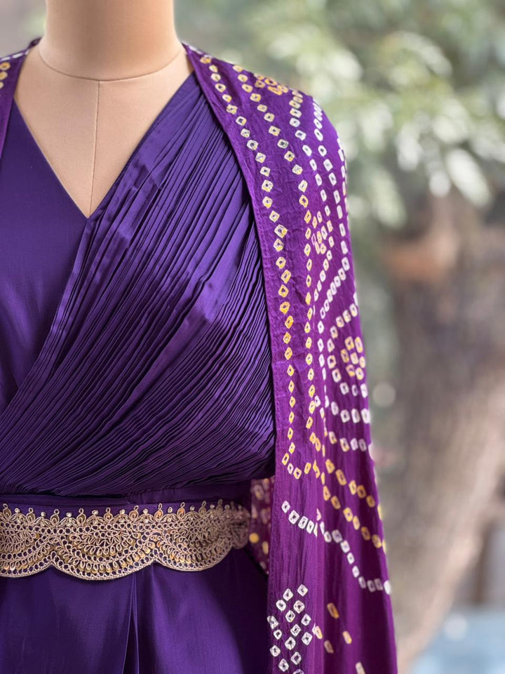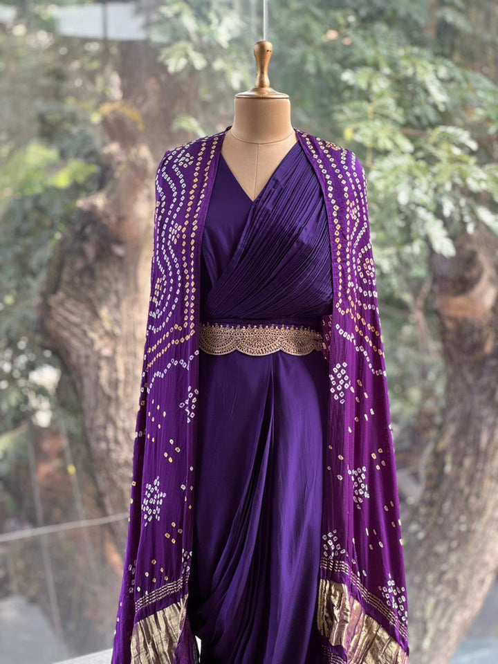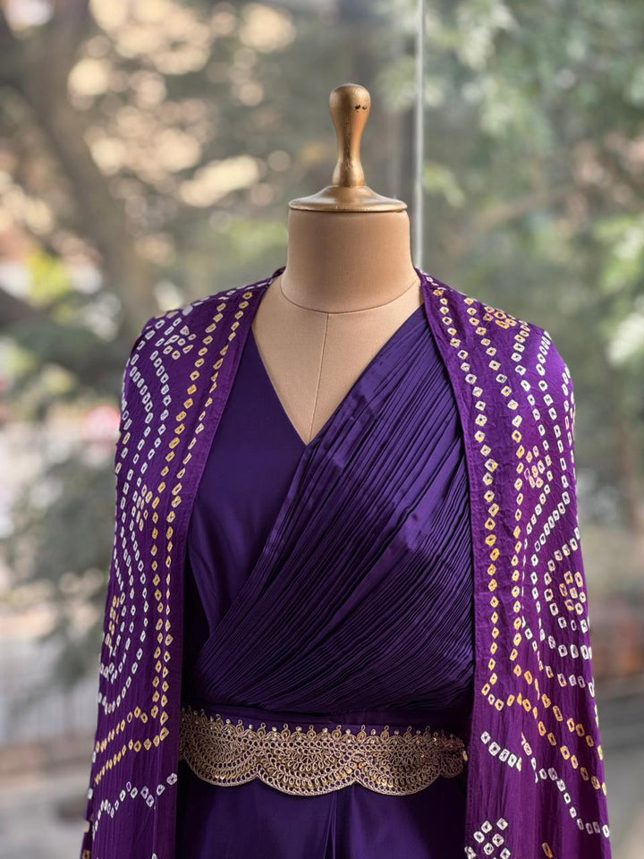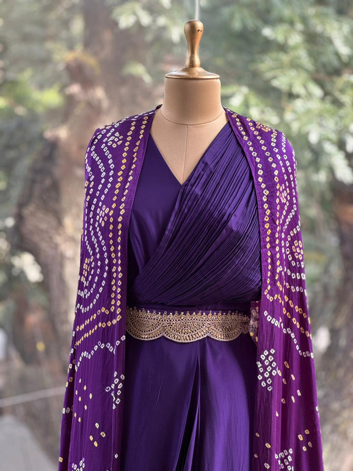 Purple Bandhej Cape Set