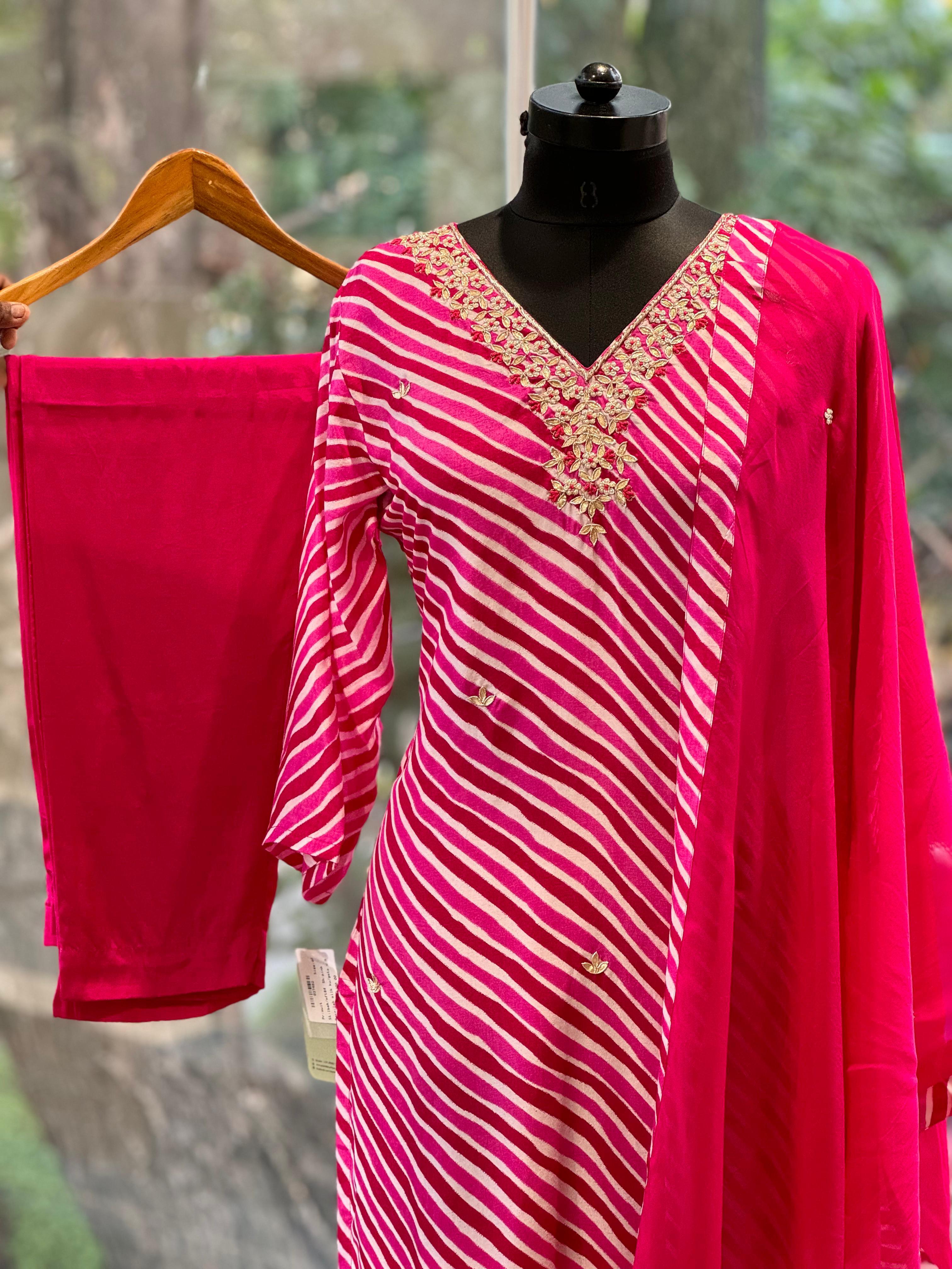 Pink Leheriya Suit Set
