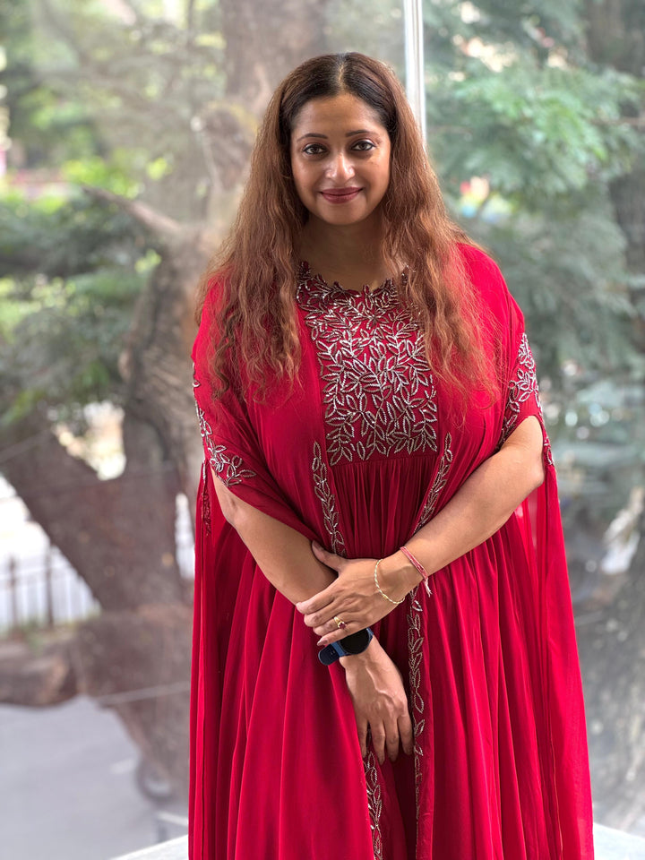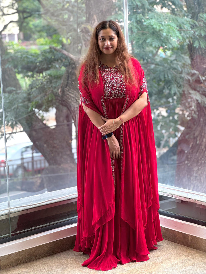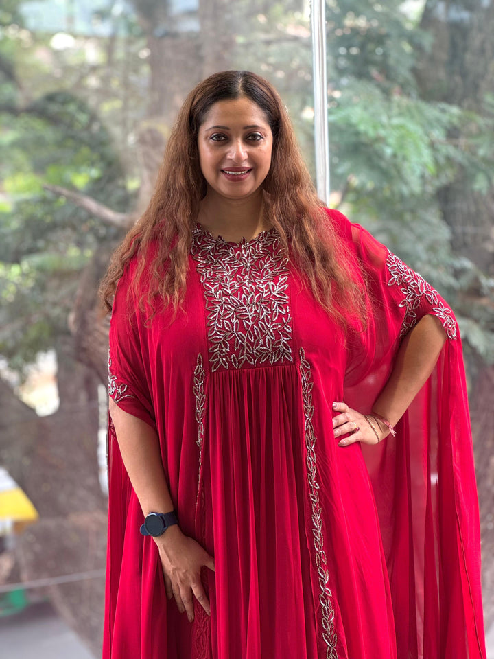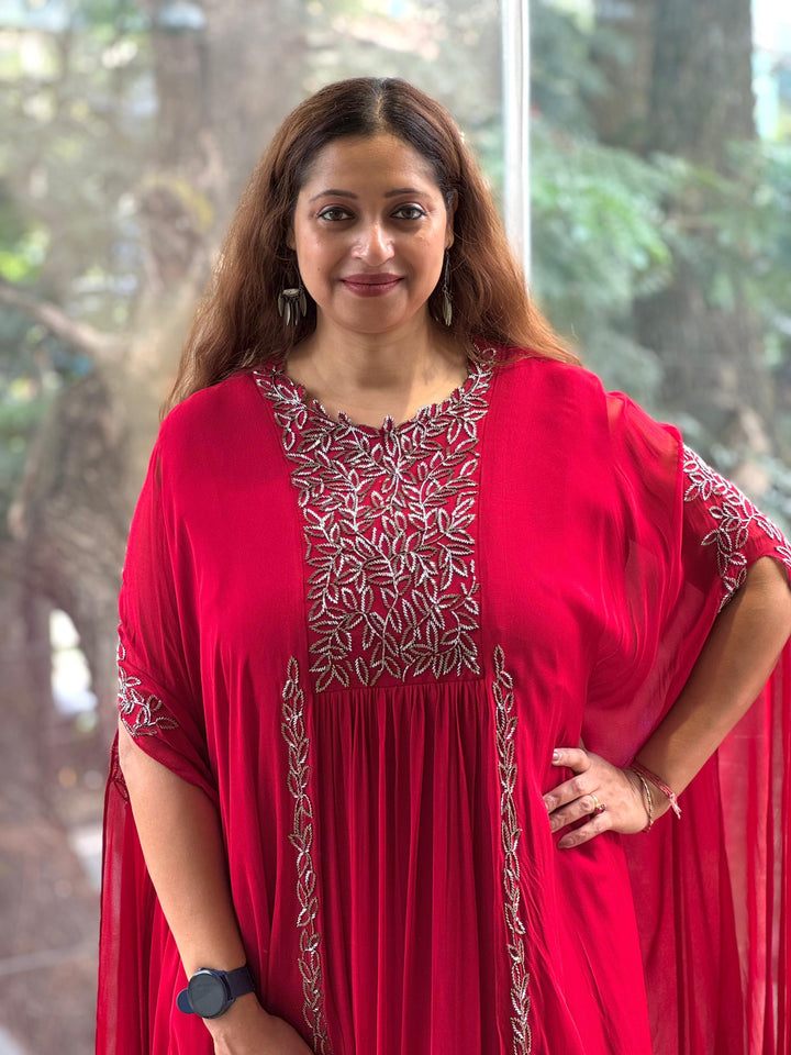 Pure georgette beautiful pipe work kaftan style flared gown.