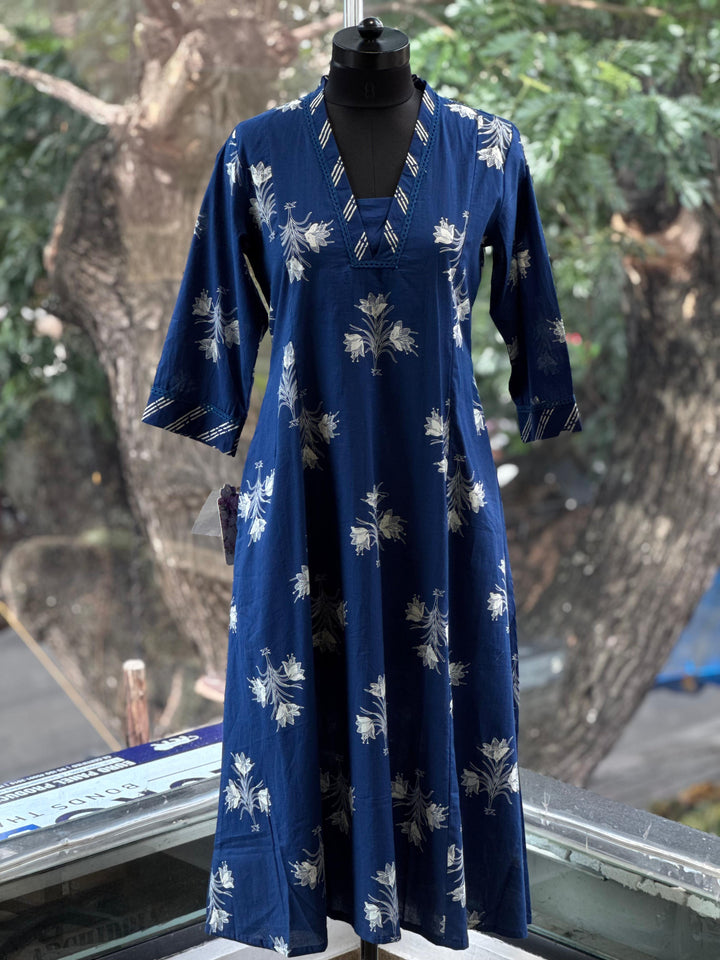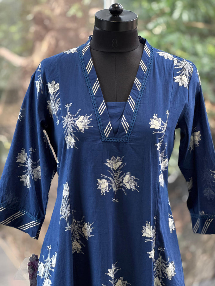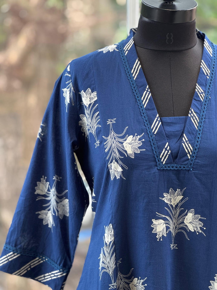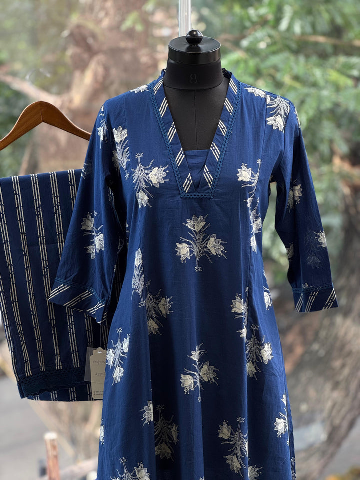 Pure cotton v neck printed kurta with straight comfort fit printed pants.
