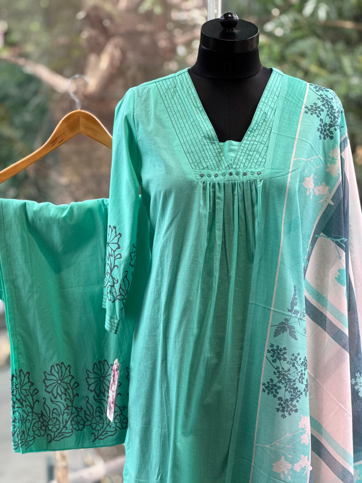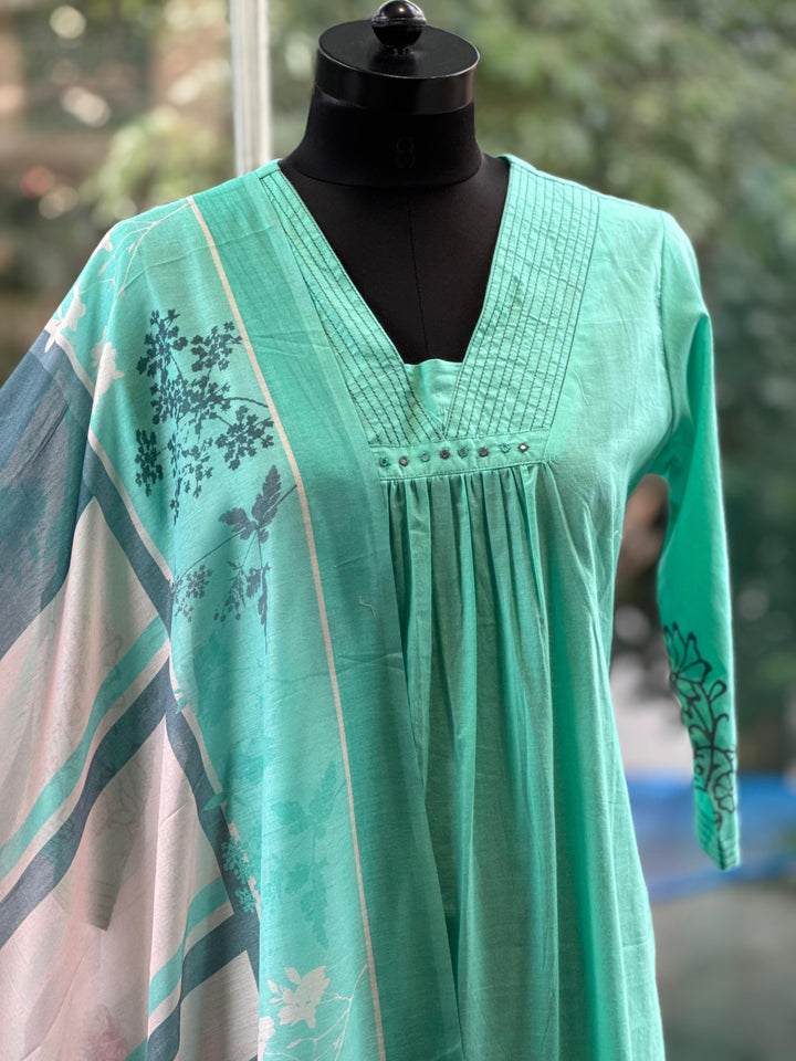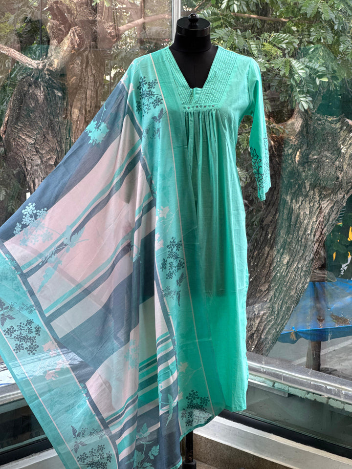 Sea Green Mul Dupatta Set