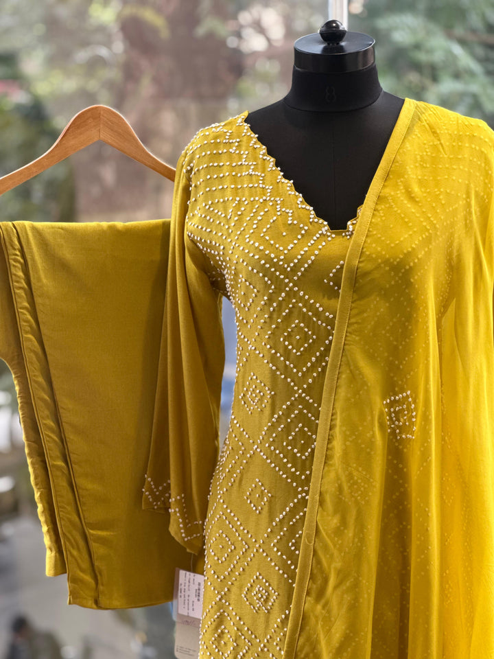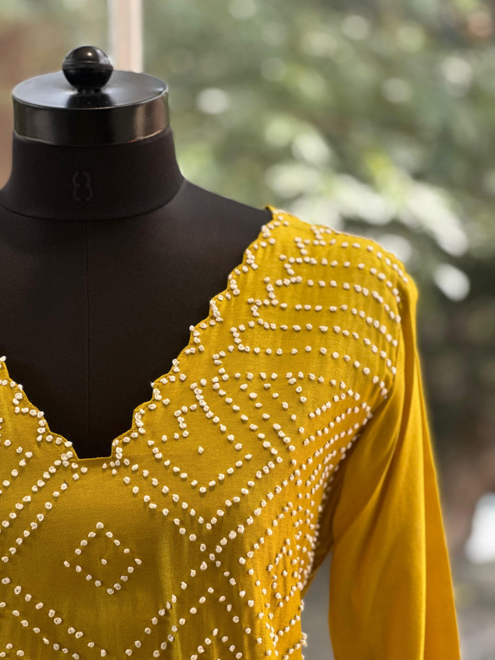 Pure silk pastel yellow straight cut jaal knot work kurta, comes with comfort fit pants and soft silk dupatta.